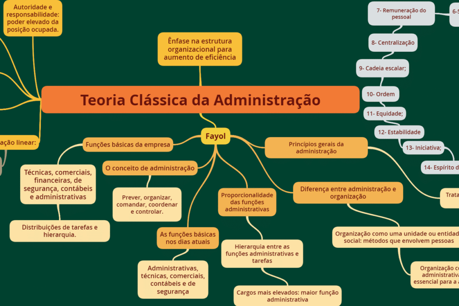 Compilação com os melhores mapas mentais, conceituais, infográficos, diagramas e resumos sobre teorias da administração.