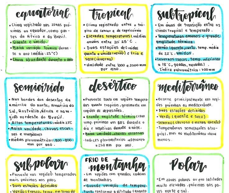 Compilação com os melhores mapas mentais, conceituais, infográficos, diagramas e resumos sobre tipos de clima.