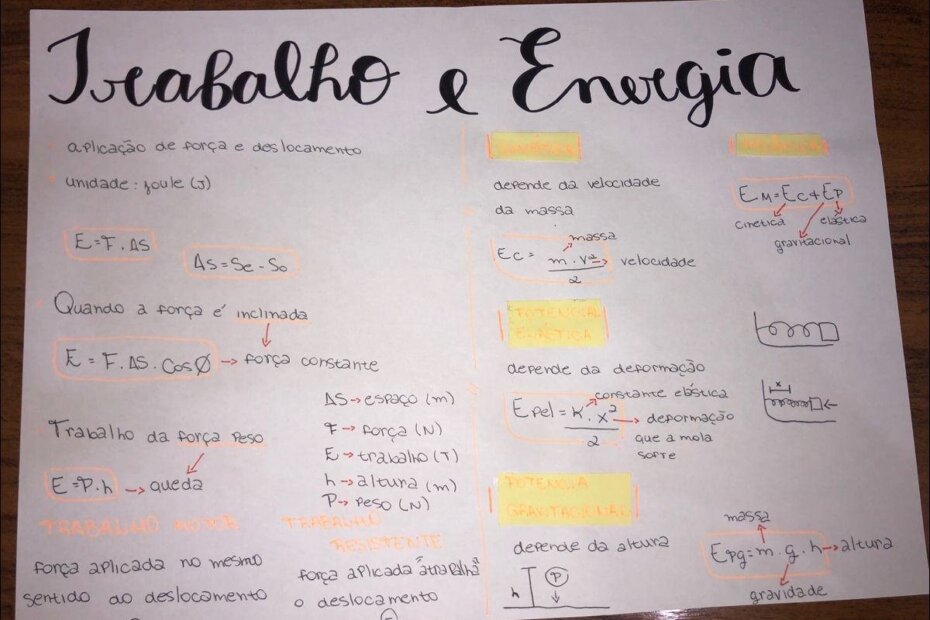 Compilação com os melhores mapas mentais, conceituais, infográficos, diagramas e resumos sobre trabalho e energia.