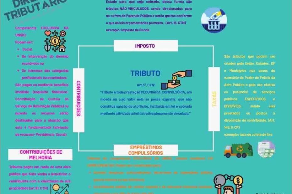 Compilação com os melhores mapas mentais, conceituais, infográficos, diagramas e resumos sobre tributos.