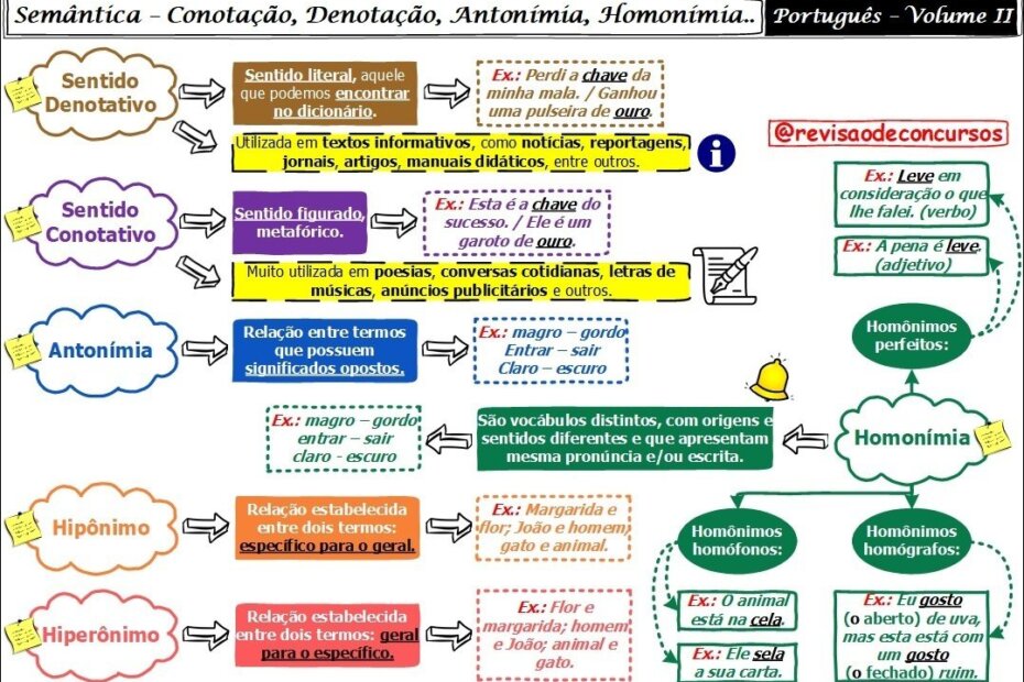 Compilação com os melhores mapas mentais, conceituais, infográficos, diagramas e resumos sobre Conotação e denotação.