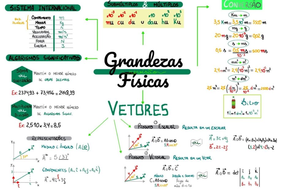 Compilação com os melhores mapas mentais, conceituais, infográficos, diagramas e resumos sobre grandezas físicas.