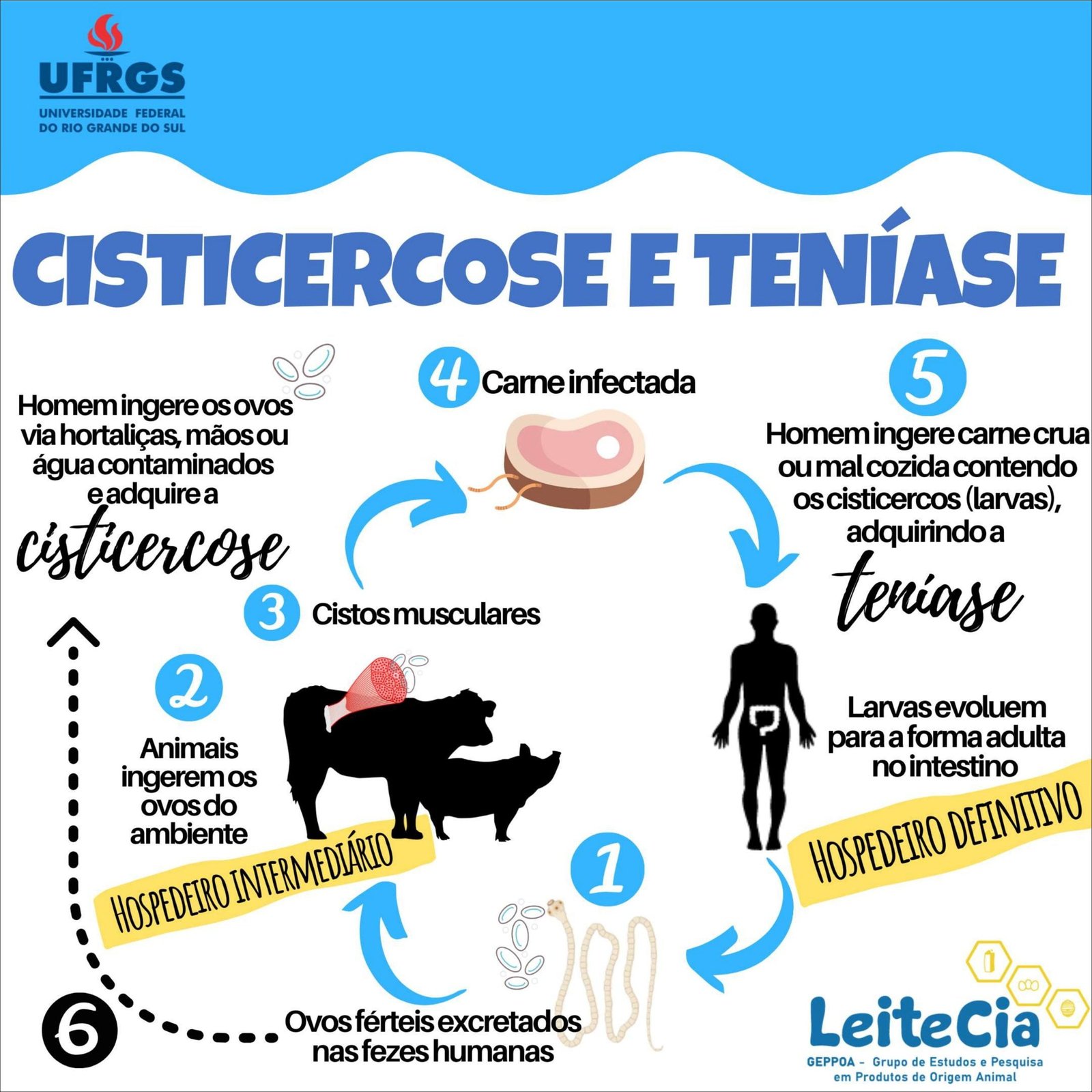 A infecção ocorre quando os cistos das tênias (presentes na carne crua ou mal cozida) são ingeridos. No intestino, os cistos se desenvolvem em vermes adultos, que podem atingir vários metros de comprimento. Os sintomas da teníase variam, mas muitas vezes são leves ou inexistentes. Quando presentes, podem incluir dor abdominal, náuseas, perda de apetite, perda de peso e, em alguns casos, presença de segmentos da tênia nas fezes.