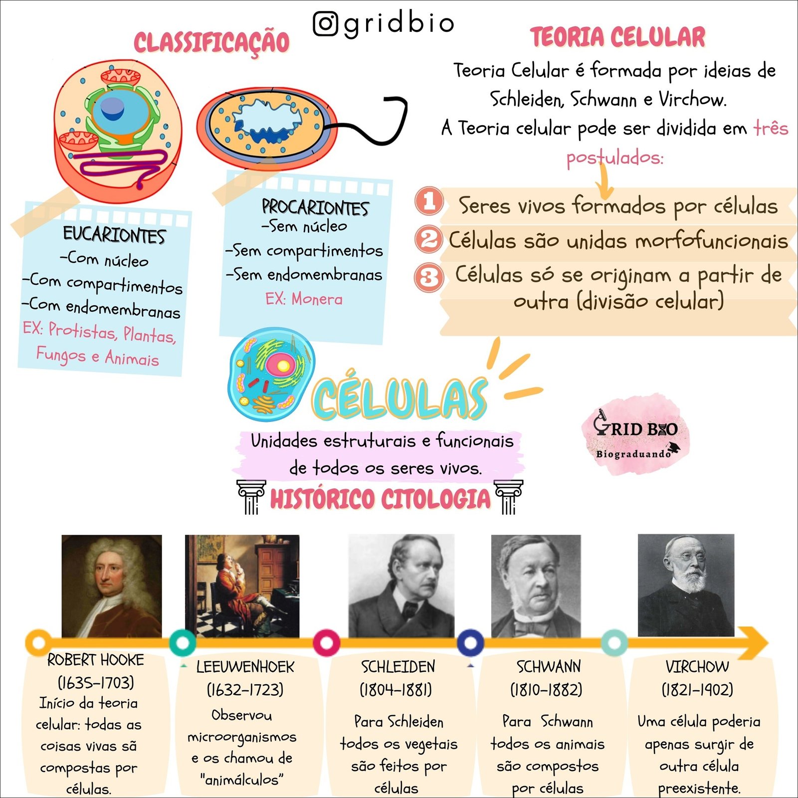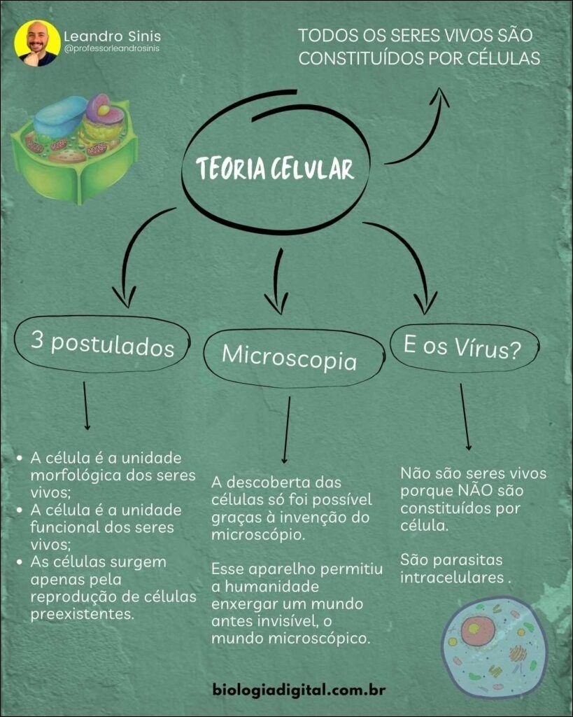 Compilação com os melhores mapas mentais, conceituais, infográficos, diagramas e resumos sobre teoria celular.