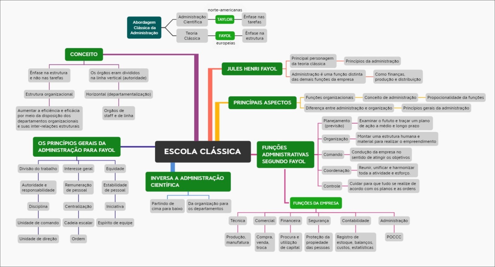 Compilação com os melhores mapas mentais, conceituais, infográficos, diagramas e resumos sobre Teoria clássica da administração.