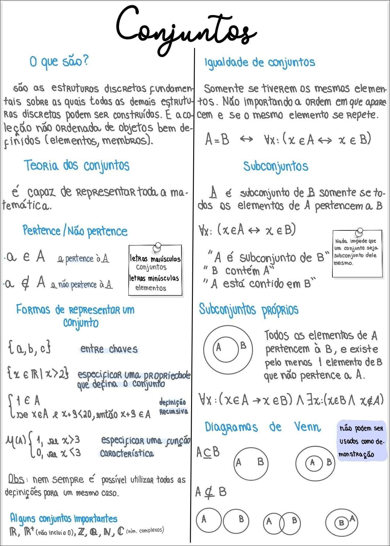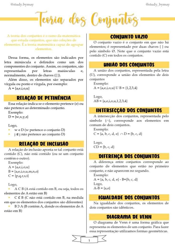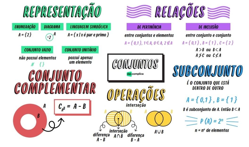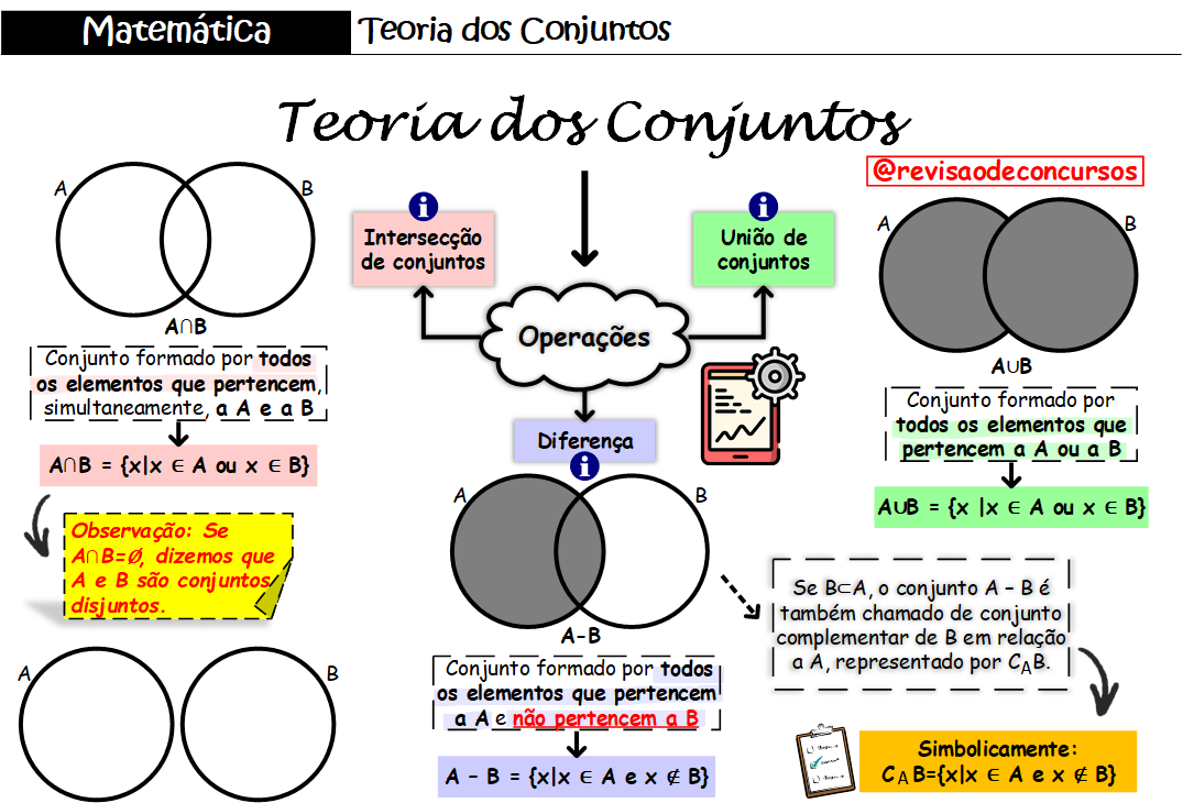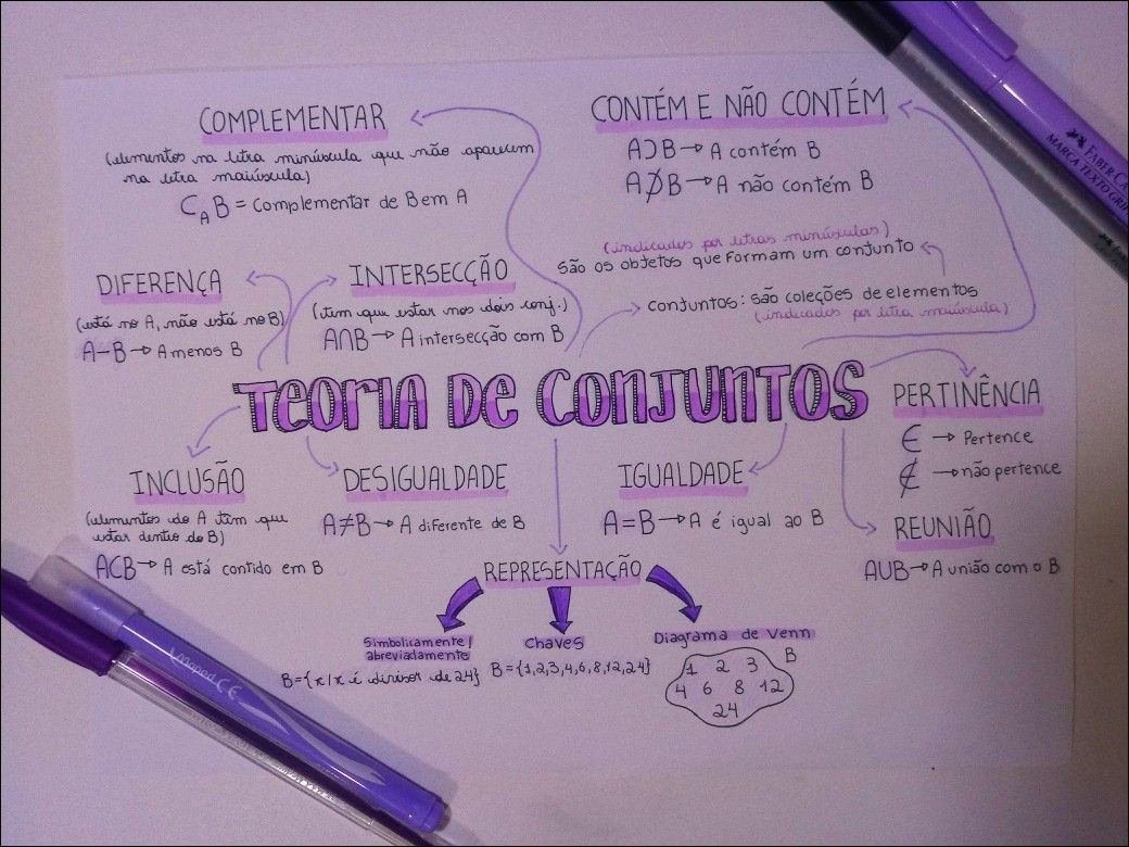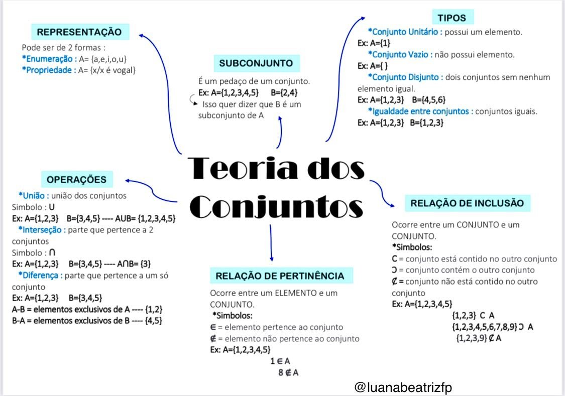Compilação com os melhores mapas mentais, conceituais, infográficos, diagramas e resumos sobre teoria dos conjuntos.