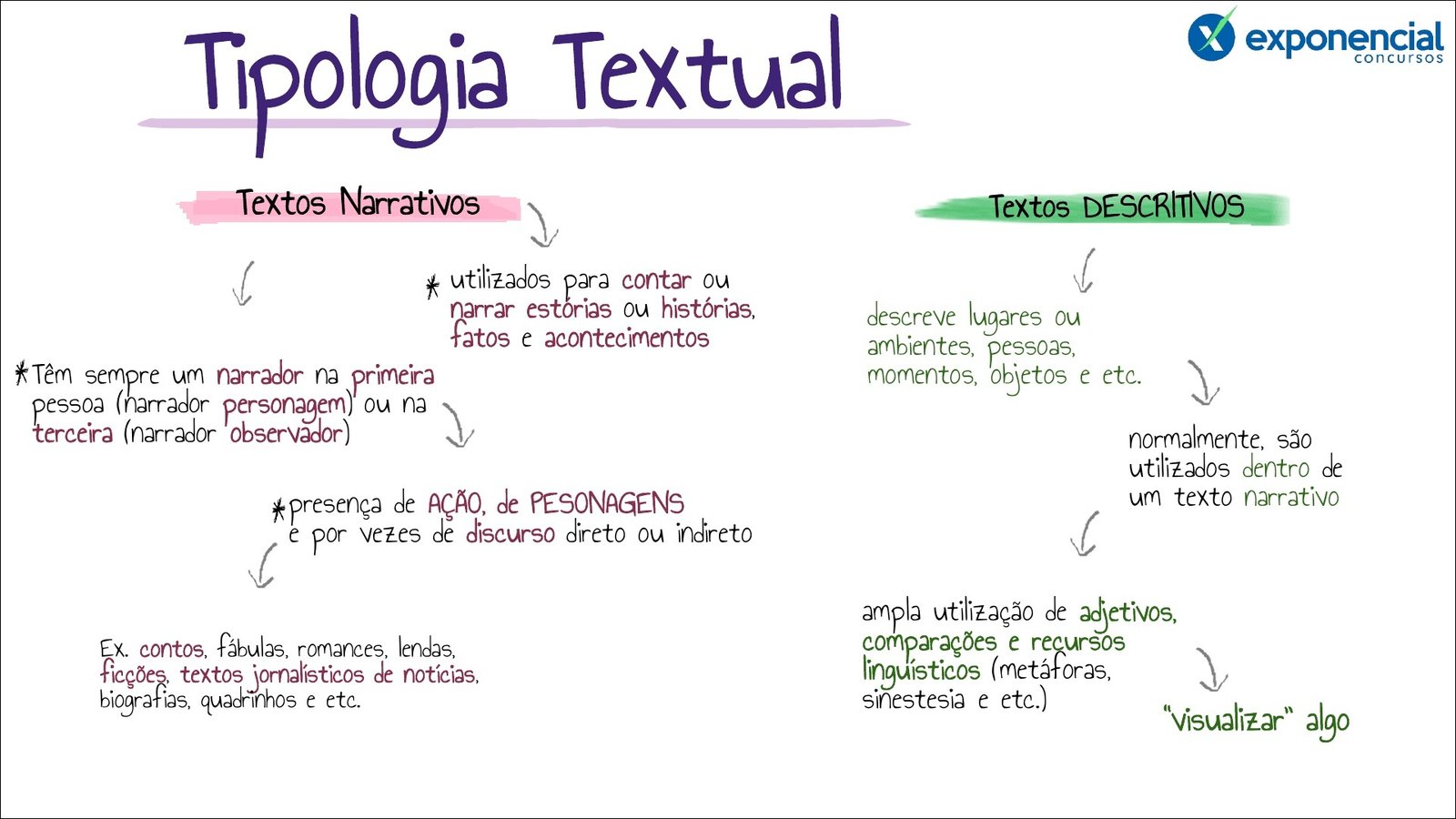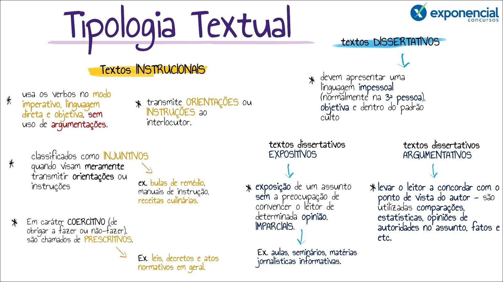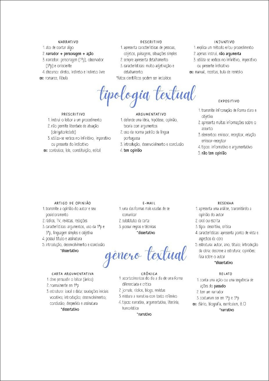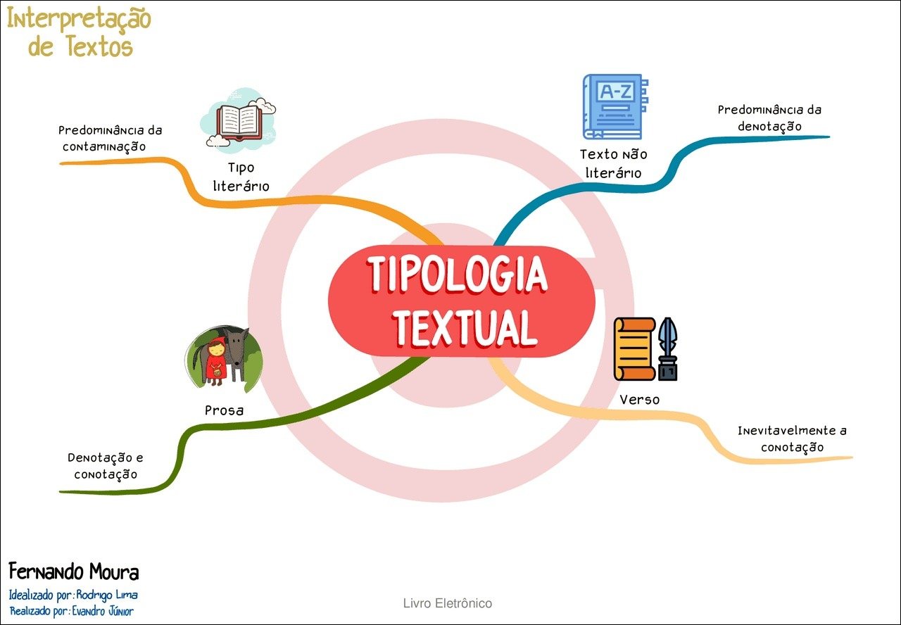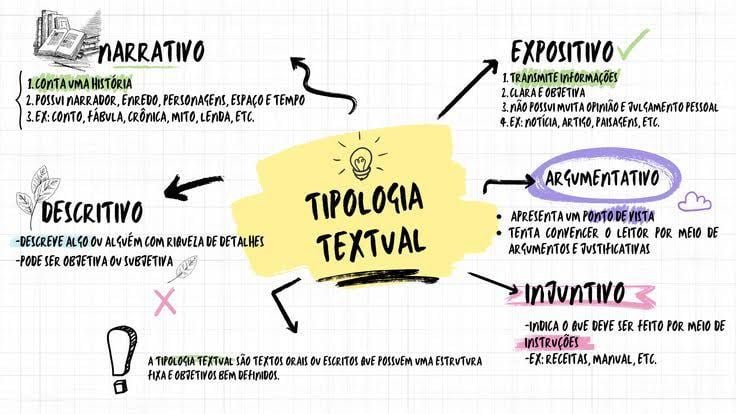 Compilação com os melhores mapas mentais, conceituais, infográficos, diagramas e resumos sobre tipologia textual.