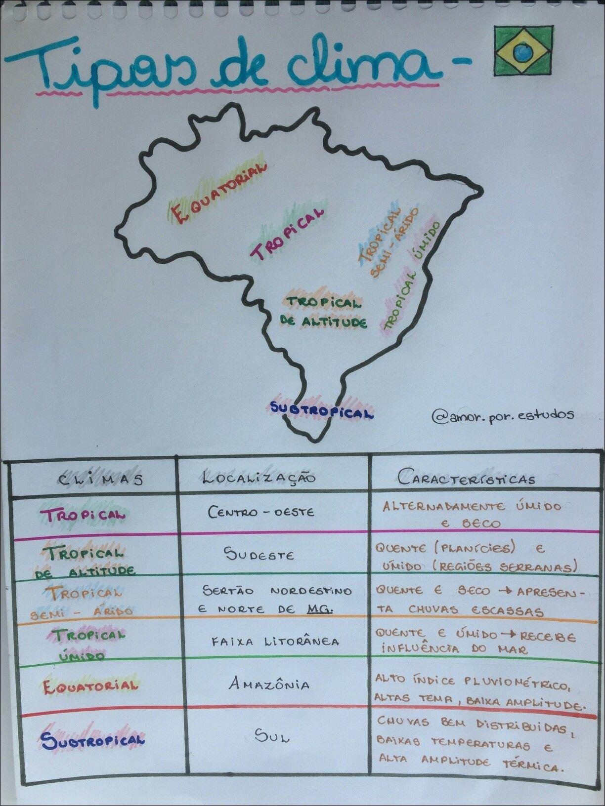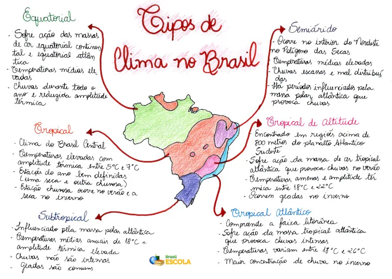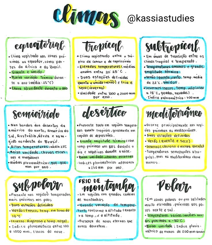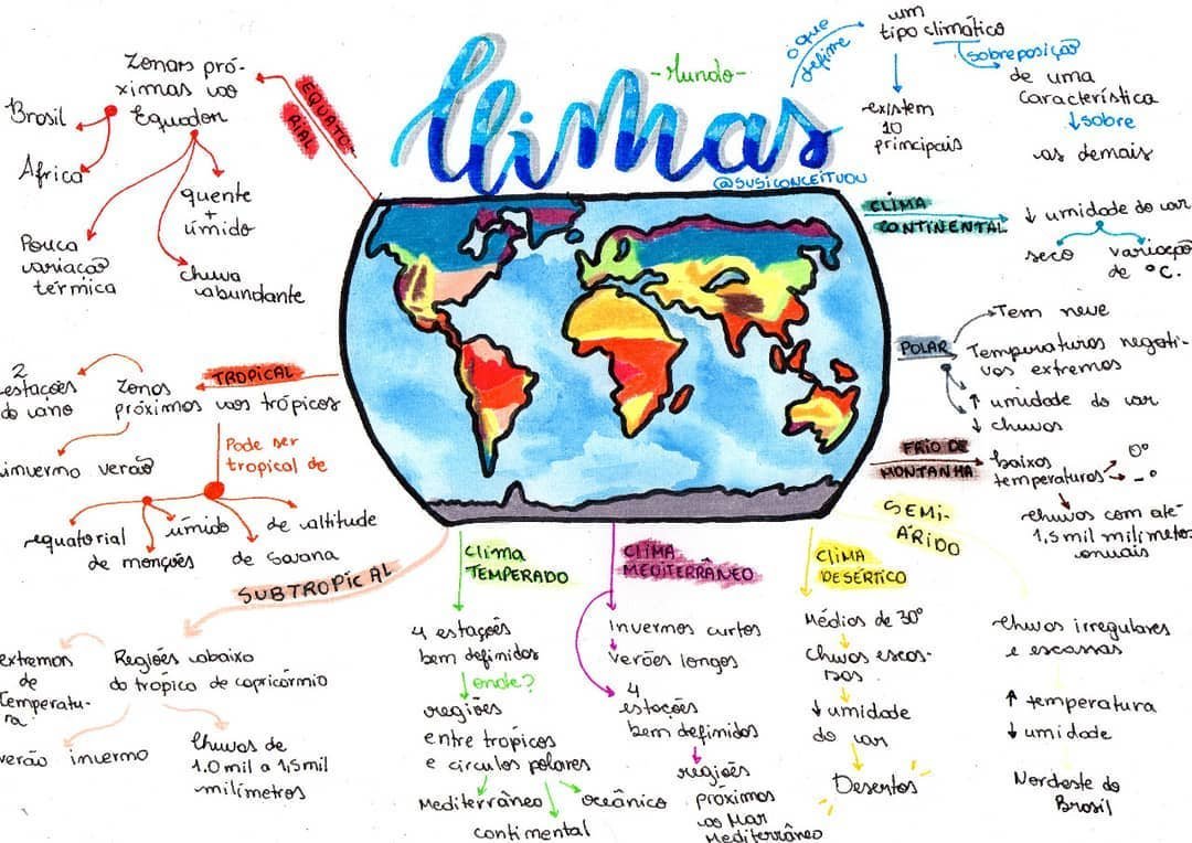 Compilação com os melhores mapas mentais, conceituais, infográficos, diagramas e resumos sobre tipos de clima.