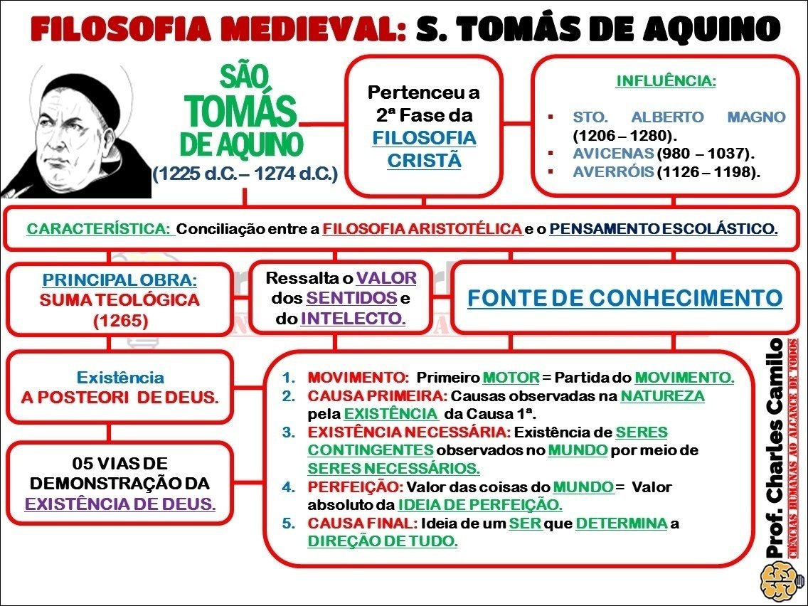 Compilação com os melhores mapas mentais, conceituais, infográficos, diagramas e resumos sobre Tomás de Aquino.