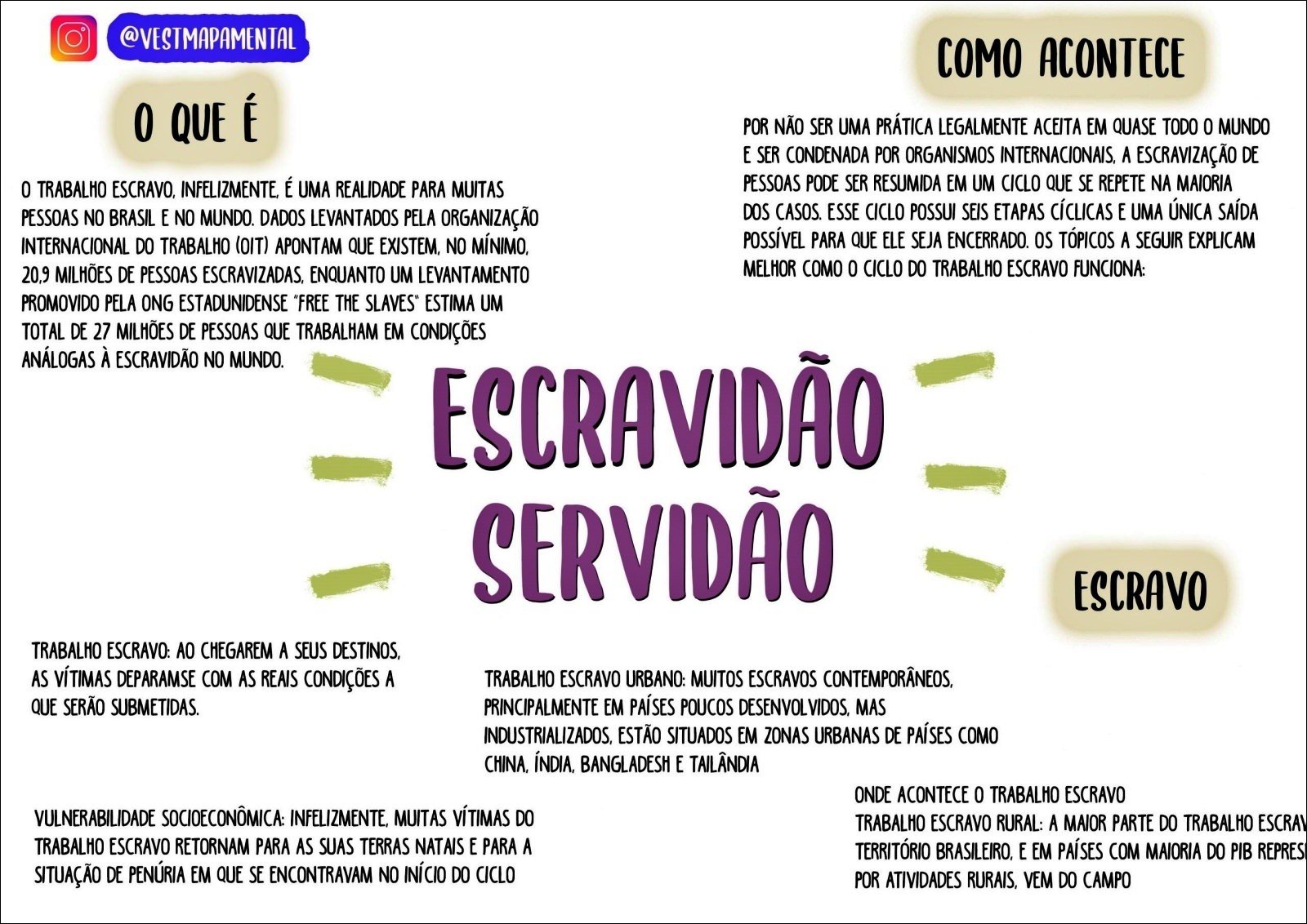 Compilação com os melhores mapas mentais, conceituais, infográficos, diagramas e resumos sobre trabalho escravo.
