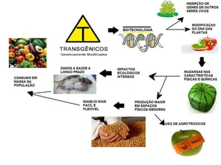 Organismos geneticamente modificados (OGMs), popularmente conhecidos como transgênicos, são organismos que tiveram seu material genético alterado usando técnicas de engenharia genética. Essa tecnologia envolve a introdução de genes de outras espécies (ou mesmo do próprio organismo) em seu DNA, com o objetivo de conferir novas características desejadas.