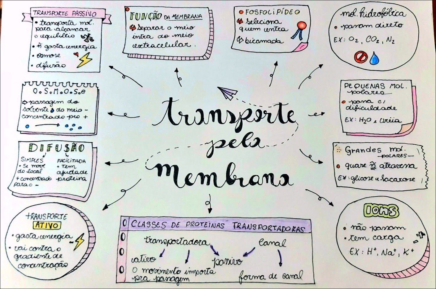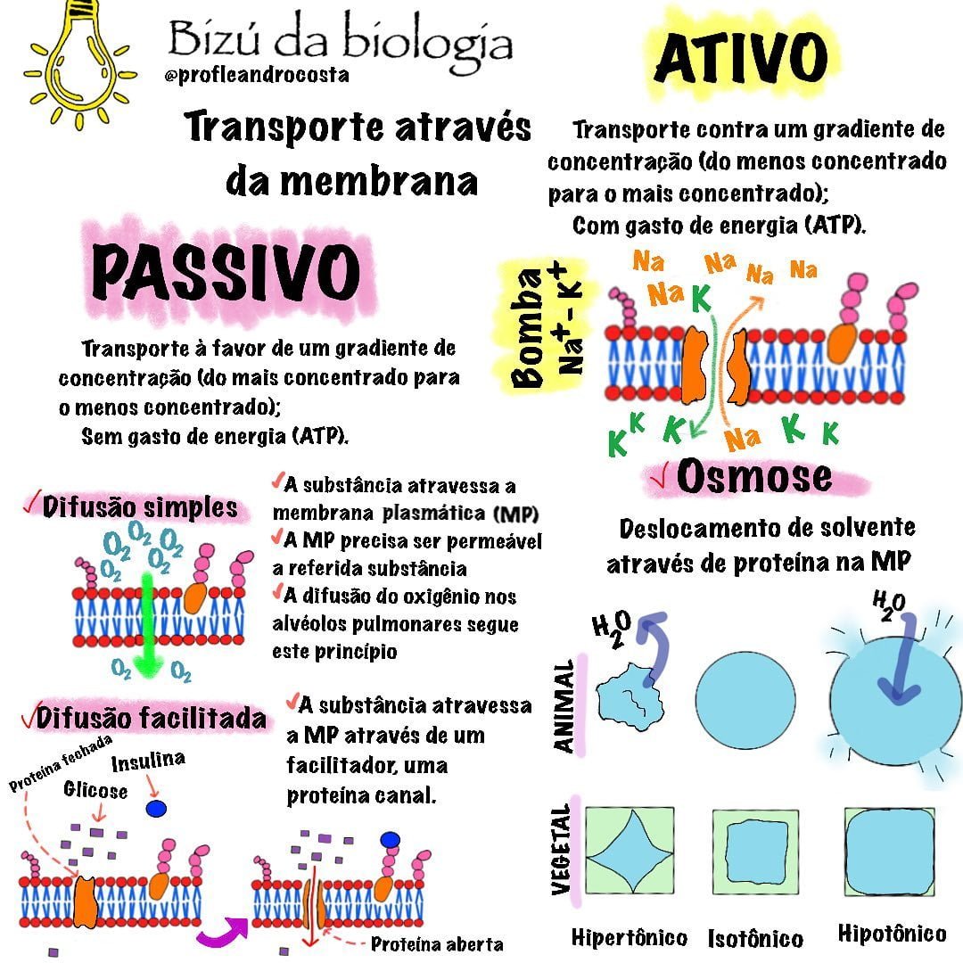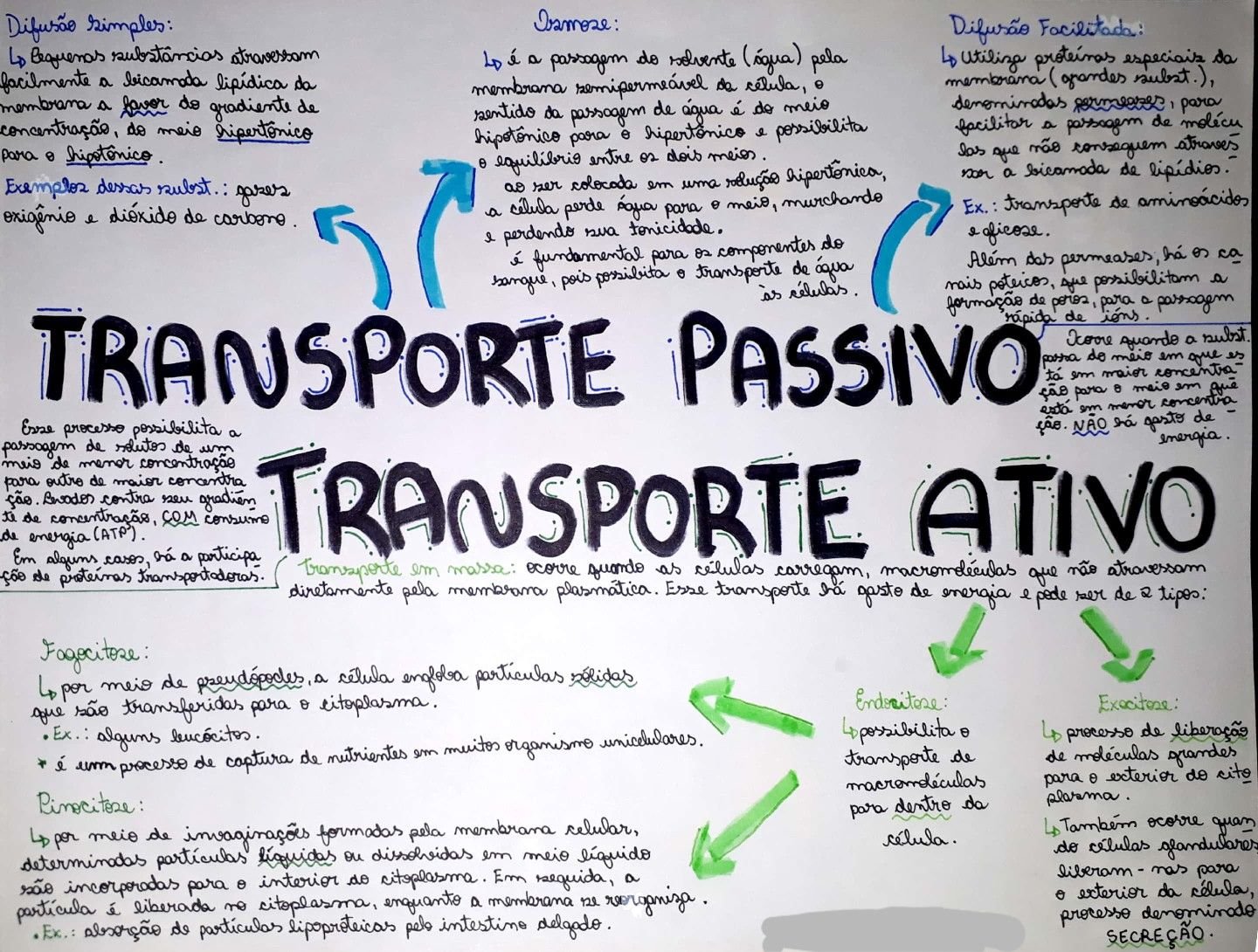 Compilação com os melhores mapas mentais, conceituais, infográficos, diagramas e resumos sobre transporte ativo e passivo.