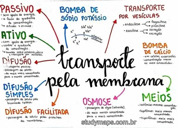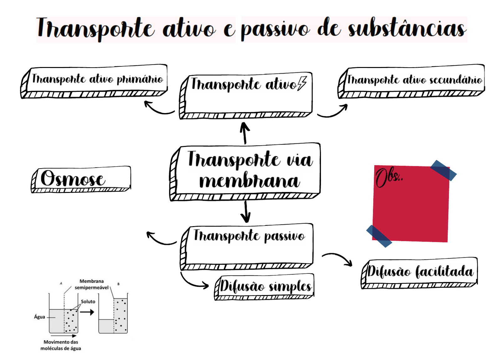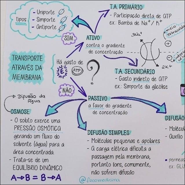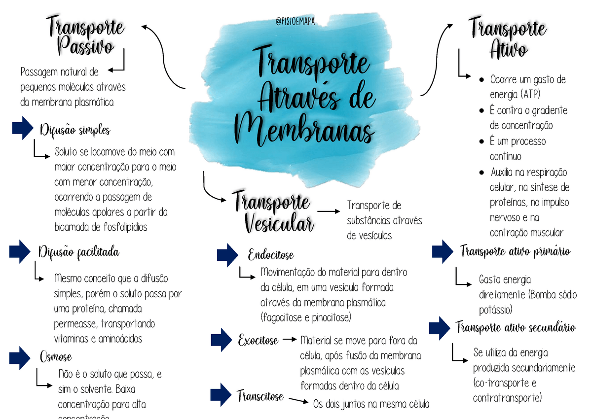 Compilação com os melhores mapas mentais, conceituais, infográficos, diagramas e resumos sobre transporte ativo e passivo.