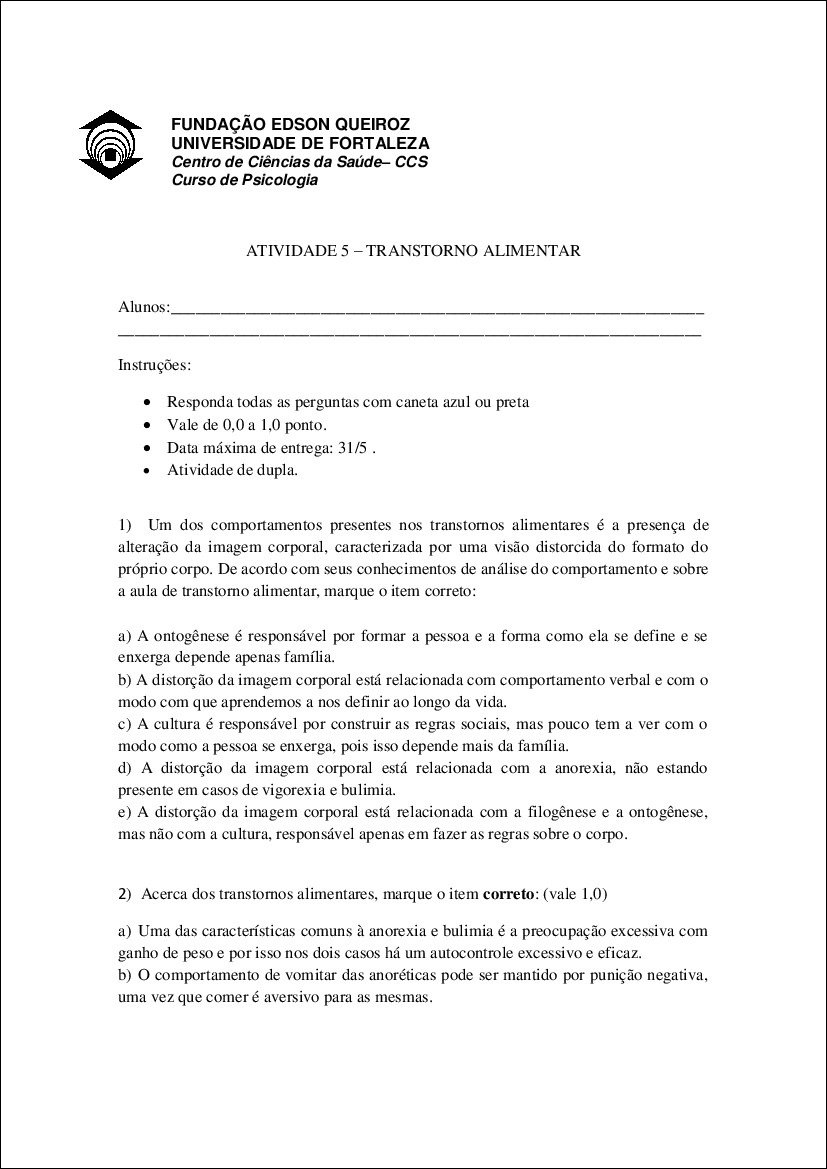 Resumo sobre transtorno alimentar