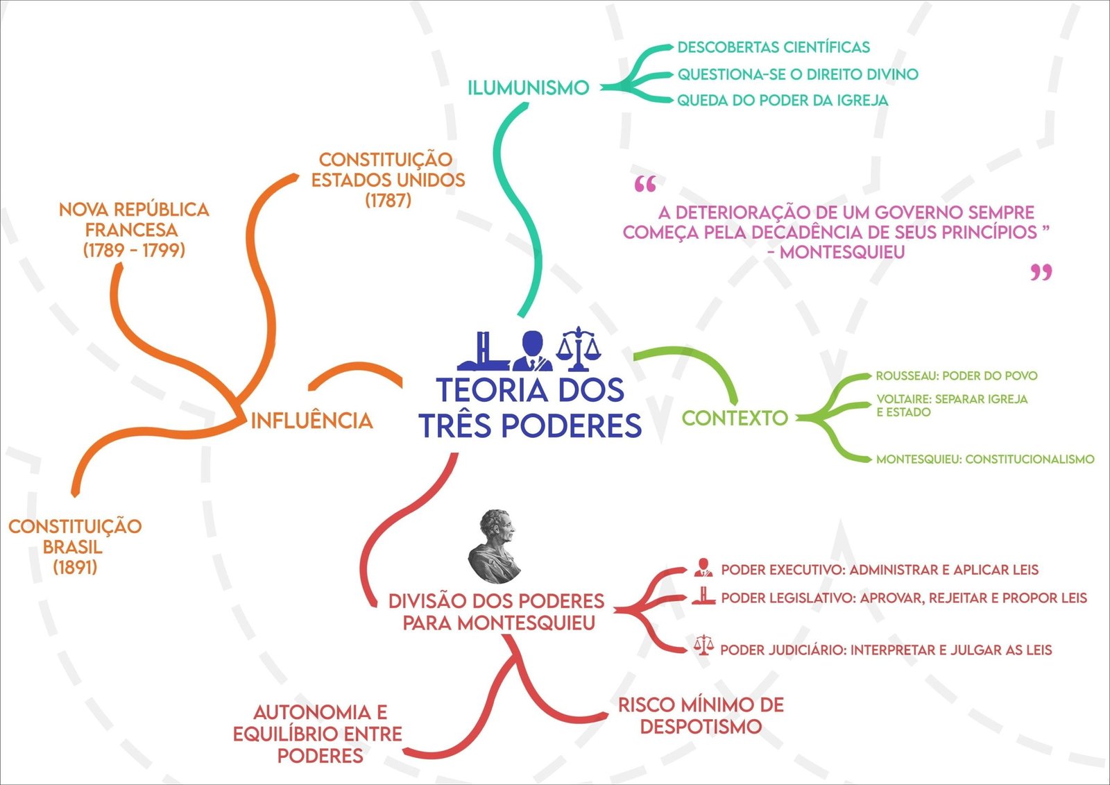 Compilação com os melhores mapas mentais, conceituais, infográficos, diagramas e resumos sobre três poderes.