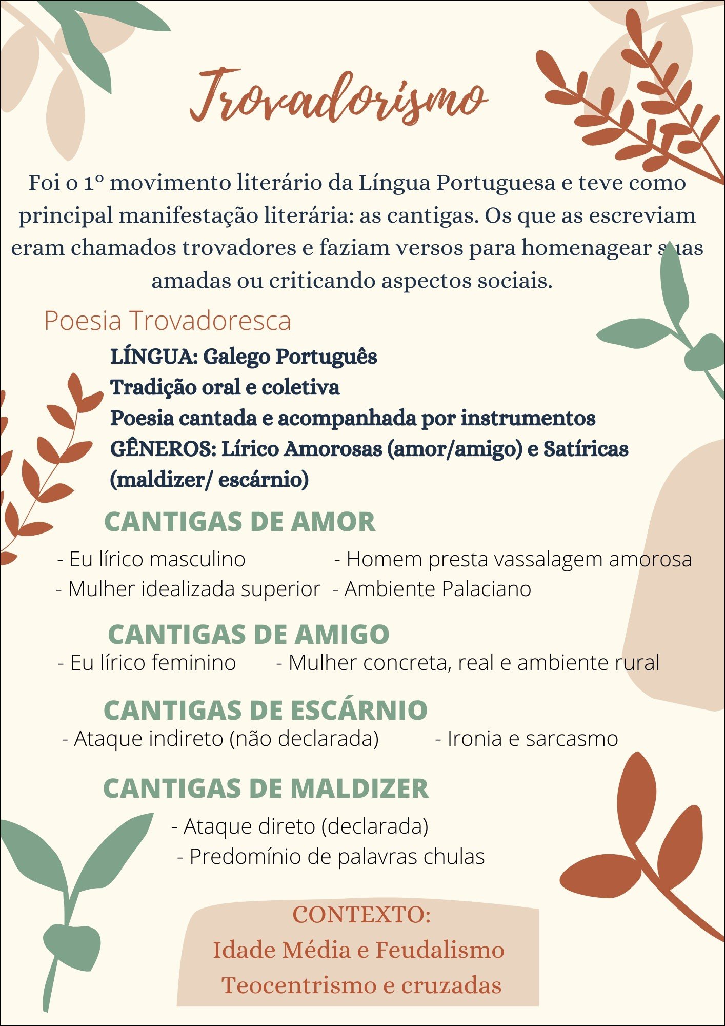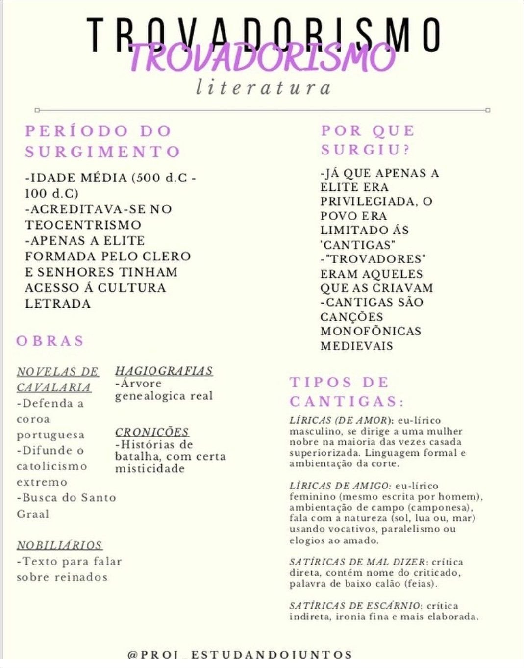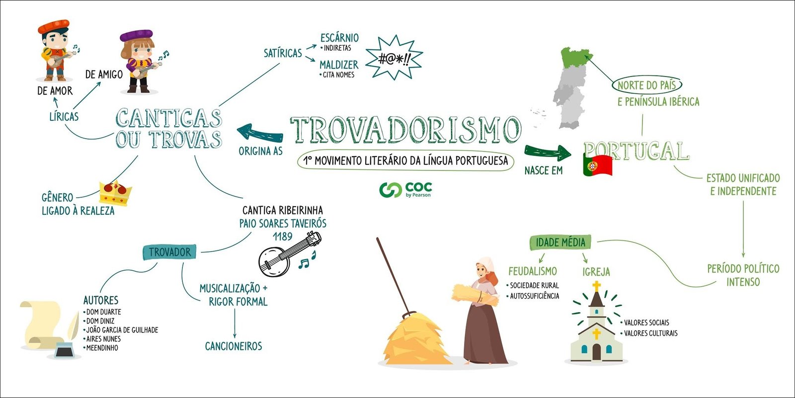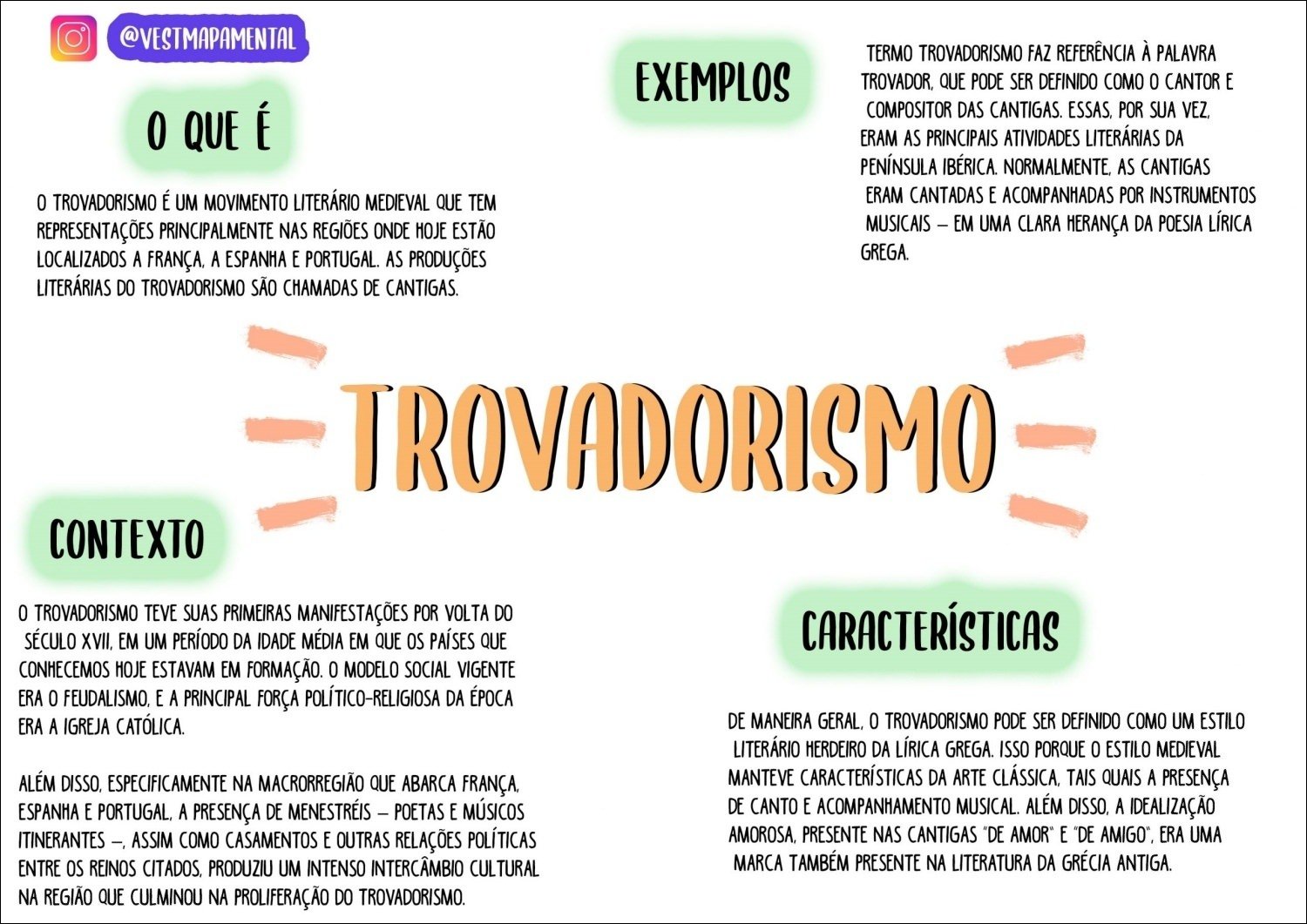 Compilação com os melhores mapas mentais, conceituais, infográficos, diagramas e resumos sobre trovadorismo.