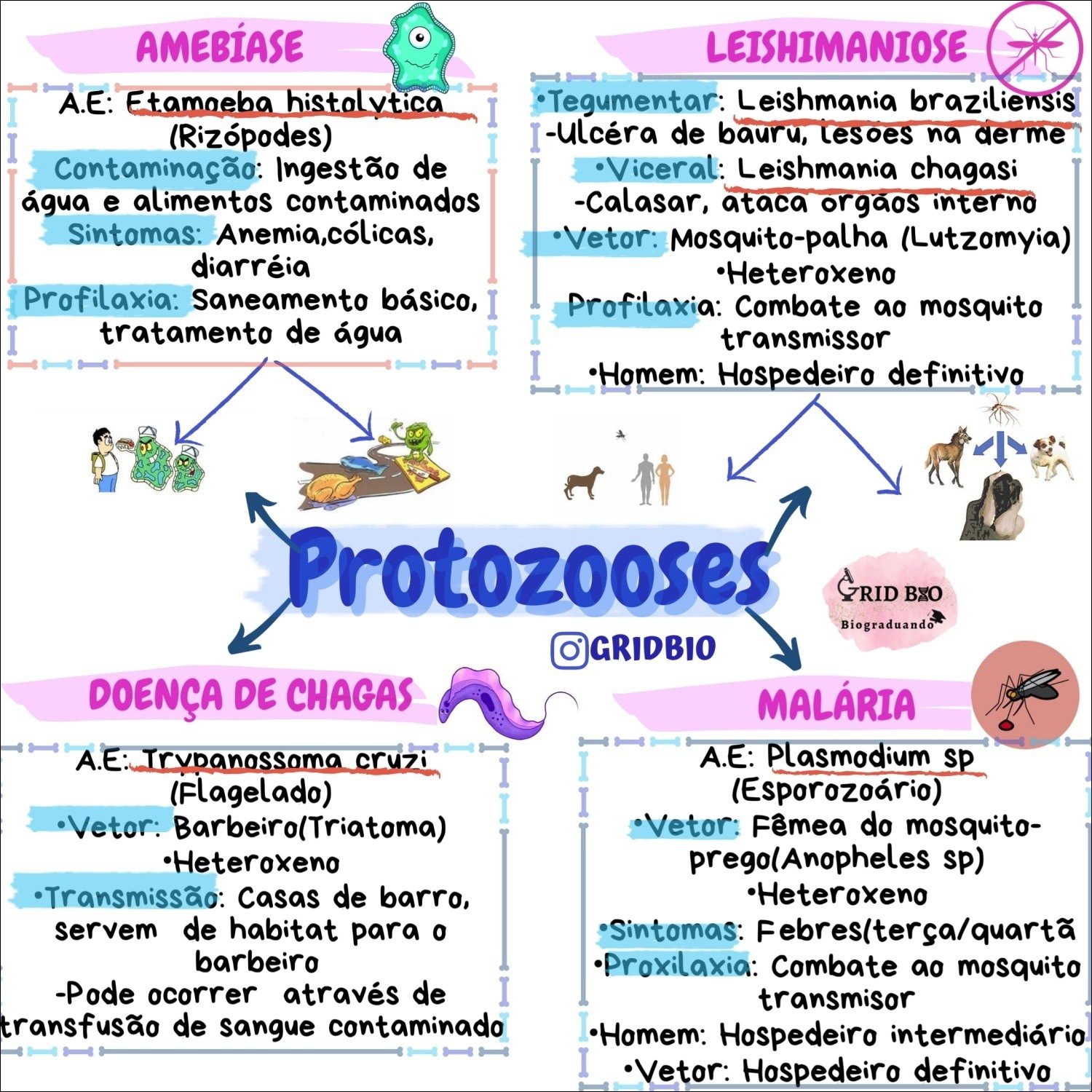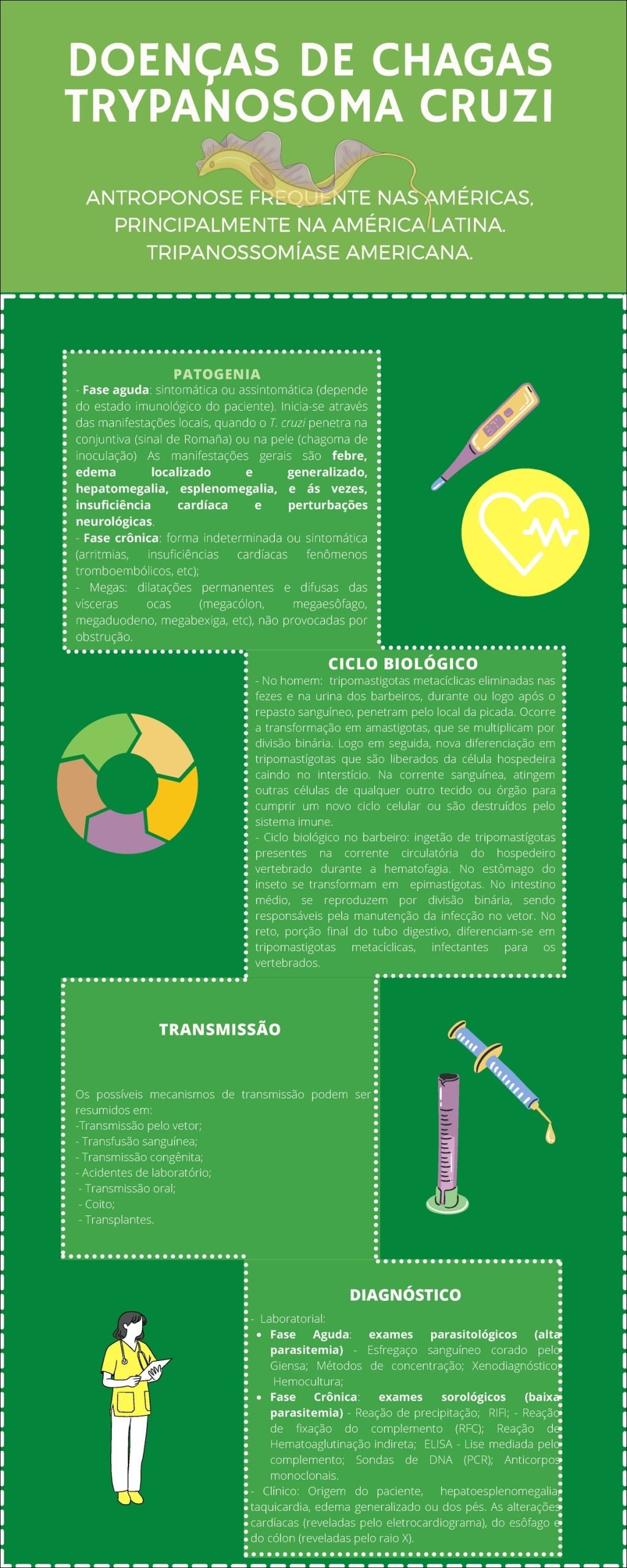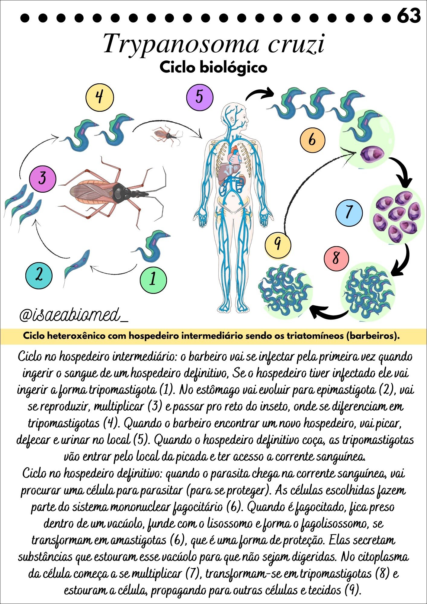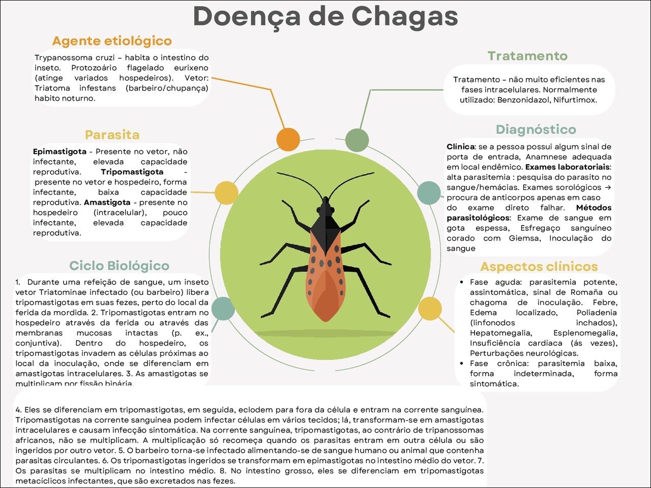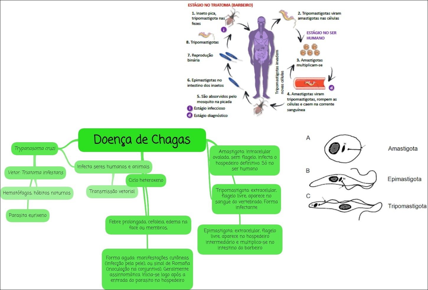 Compilação com os melhores mapas mentais, conceituais, infográficos, diagramas e resumos sobre Trypanosoma cruzi.