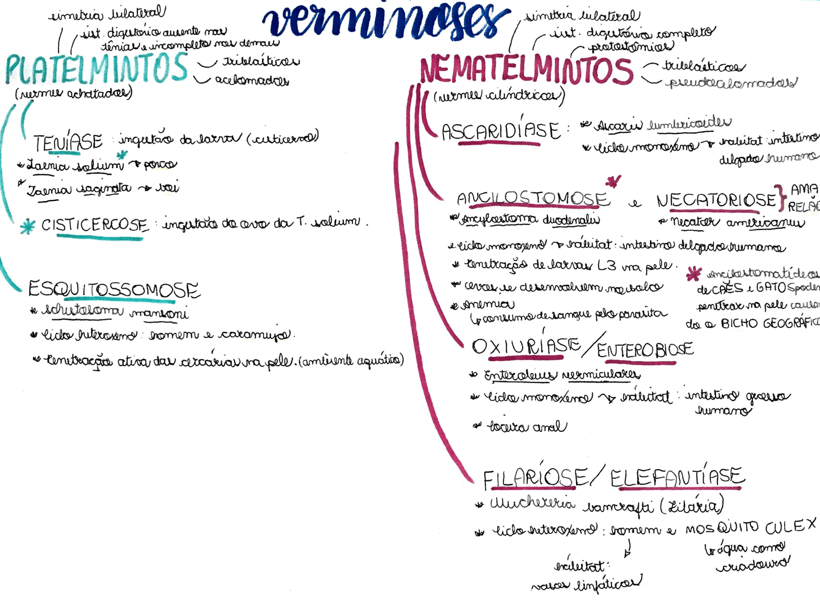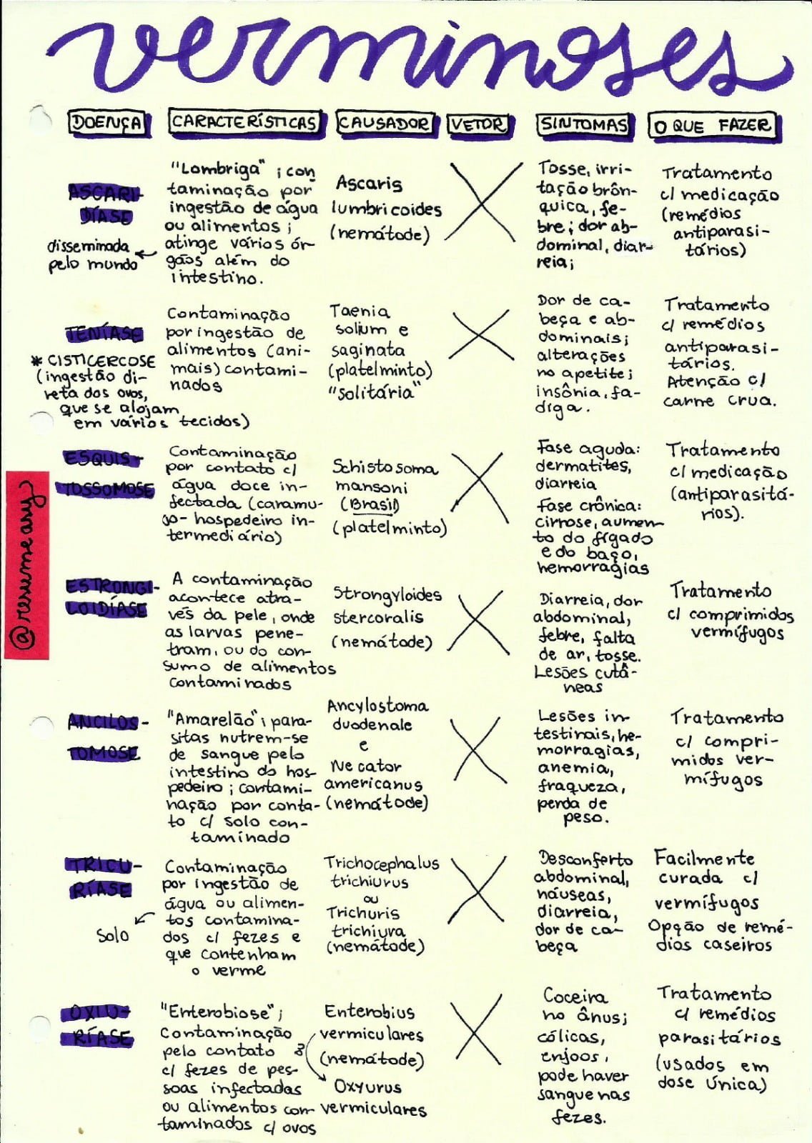 Compilação com os melhores mapas mentais, conceituais, infográficos, diagramas e resumos sobre verminoses.