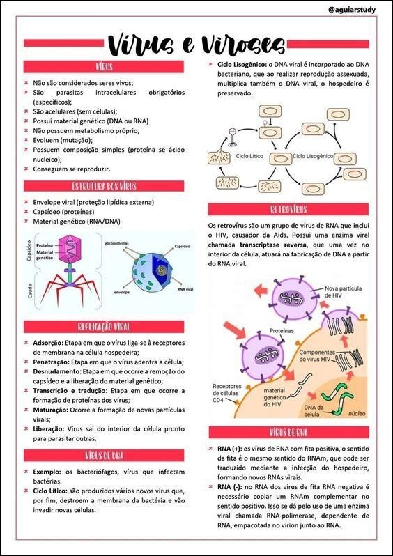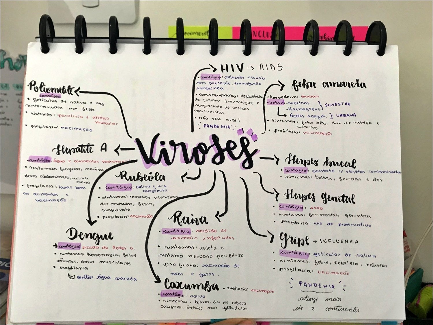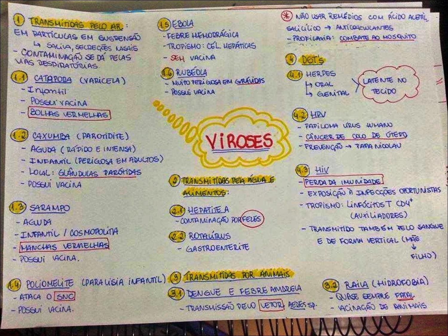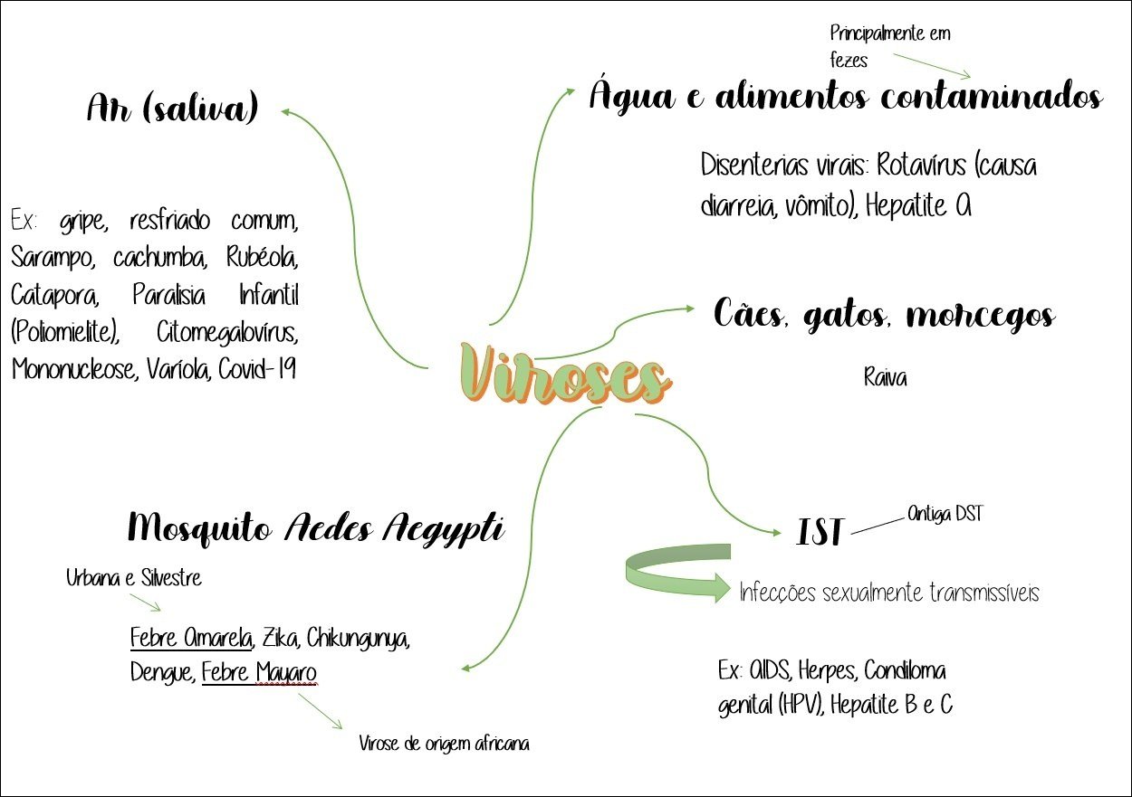 Compilação com os melhores mapas mentais, conceituais, infográficos, diagramas e resumos sobre viroses.