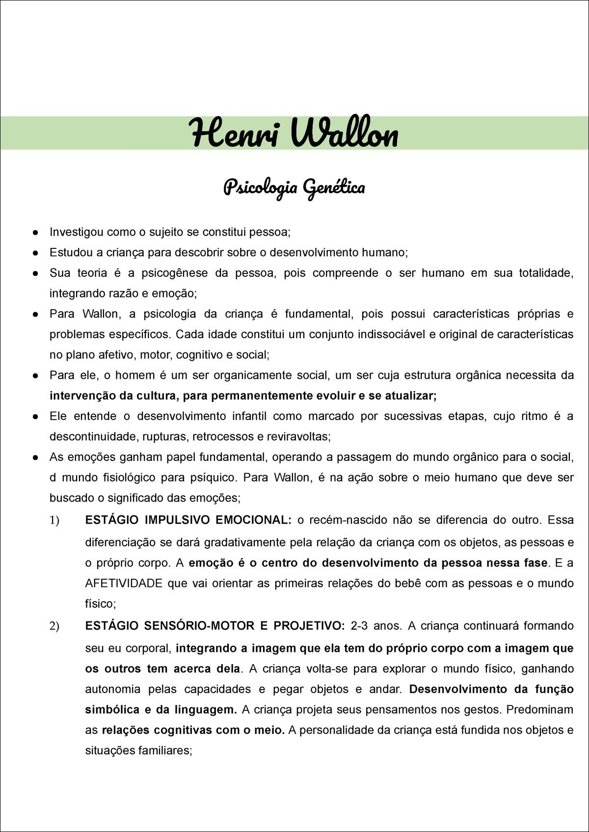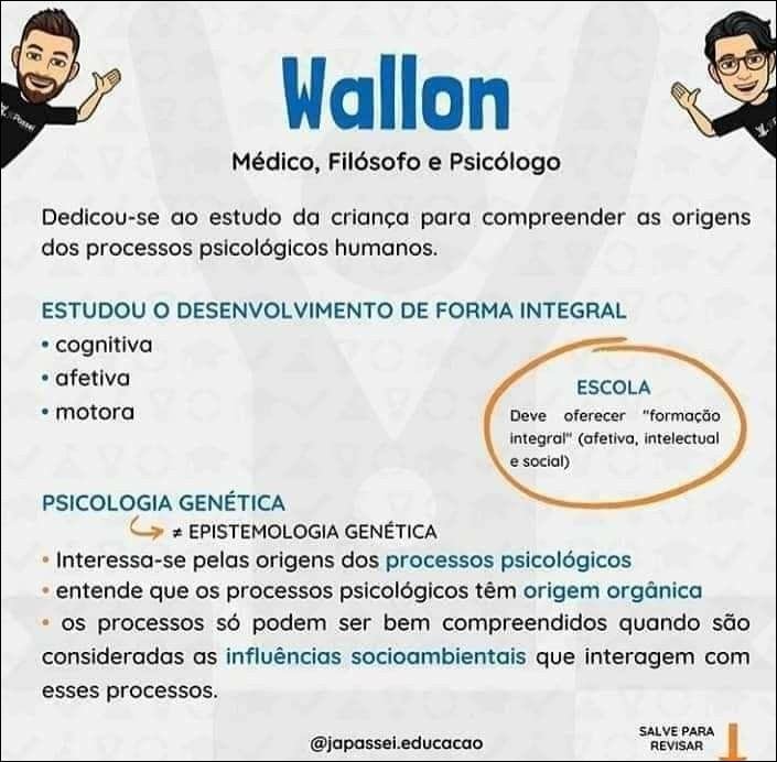 Compilação com os melhores mapas mentais, conceituais, infográficos, diagramas e resumos sobre wallon.